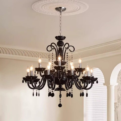 Candelabro de cristal de vela negra Premium contemporáneo para Hotel Villa Lobby Hall Candelabro de cristal grande de alta calidad