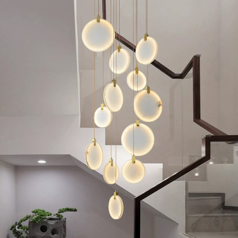 Accesorios de iluminación colgantes de cristal redondo de estilo nórdico, edificio dúplex, escalera giratoria, salón de banquetes, candelabro de lujo para hoteles