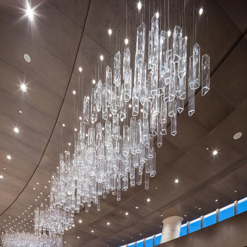 Candelabro de cristal K9 transparente de Arte Moderno personalizado para decoración interior de pasillo de Hotel candelabro de cristal de lujo
